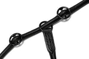 Näituserihm nailonist ja nahast kaelatoetusega. Kaunistatud pärlitega.