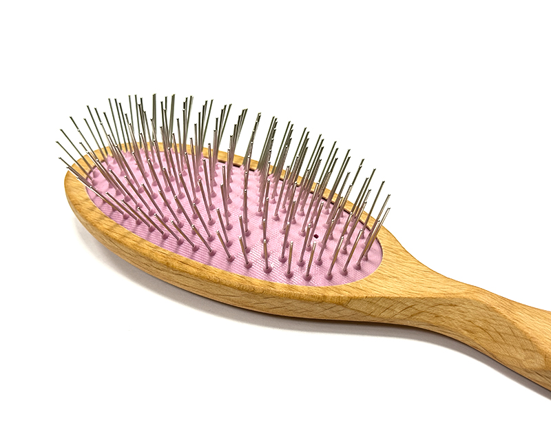 Металлические пины с закруглёнными кончиками легко скользят по шерсти, аккуратно распутывают её, разглаживают структуру и мягко массируют кожу, не повреждая волос и не травмируя кожу. Регулярное использование помогает: